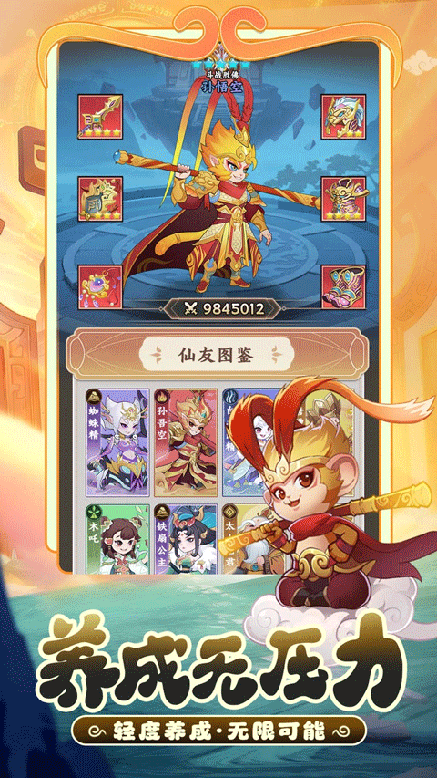 采用独特的国漫画风,将中国传统文化与现代游戏设计相结合,创造出既古典又现代的视觉体验。游戏中的角色卡牌、场景均体现了浓郁的中国传统艺术风格,还原了西游神话中的经典场景。