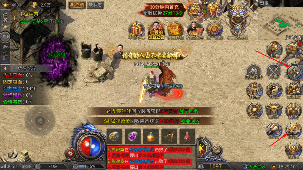 1、创新性的搭载了强力英雄殿,完美传承了复古传奇的经典元素;