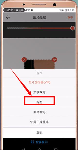 点击底部【裁图】,选择一张要抠图的图片,点击右上角确定;