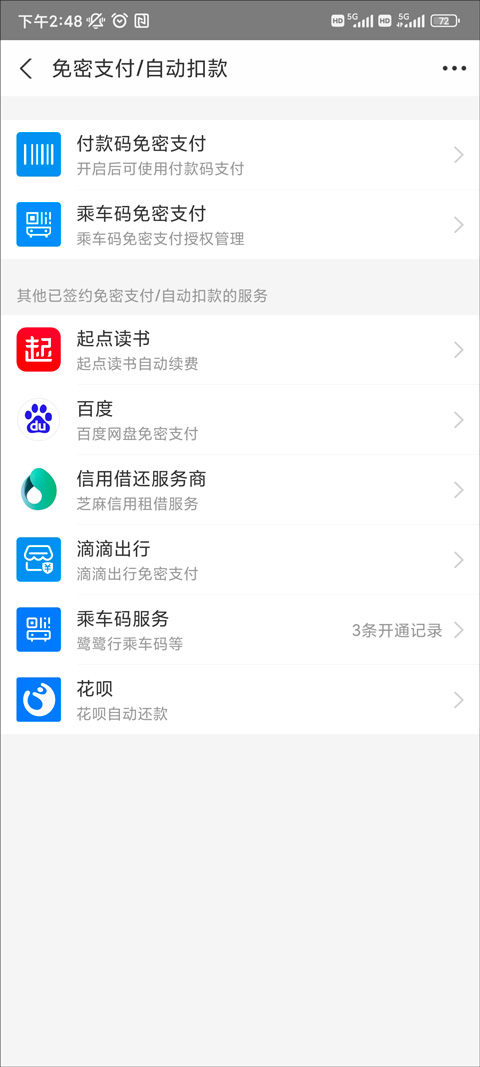 3、在设置页面点击“支付设置”—“免密支付/自动扣款”,找到需要取消自动续费的服务。