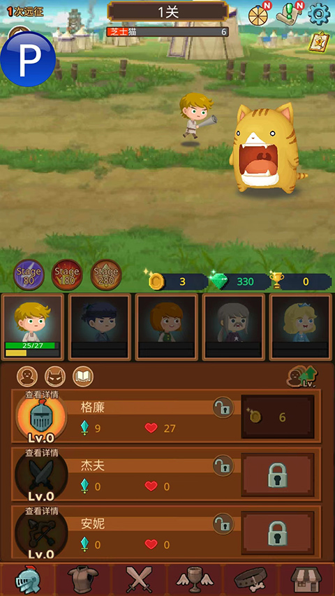 1、游戏中的角色将会自动进行各类动作,包括战斗、探险和收集资源,你只需要轻松点点,升级角色即可。