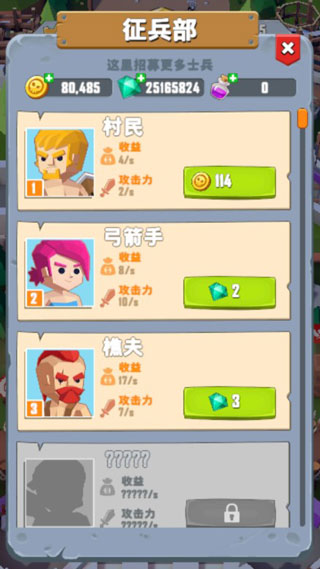 总体来说,游戏难度不是特别大,主要通过召唤从绳索中下落的士兵来守护部落的和平,通过击杀入侵的敌人和BOSS获取收益,期间指挥官升级也能够带来大量的金币,而且招募系统也配备了大量的高端英雄,可以利用钻石直接招募,省去了繁琐的合成过程。