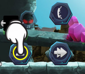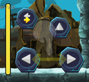 点击下列图标可以尝试跳跃,或者点击两下进行二连跳,点击双箭头可以切换手枪史莱姆,攻击右侧的敌人,可自动瞄准目标,但史莱姆不能向后攻击,经由一段时间后,狂暴模式将被激活,装备狂暴模式时,史莱姆会出现蓝色光环,在狂暴模式下,史莱姆的攻击速度和攻击力会在短时间内增加,当狂暴模式激活时,会有红色光环包围着史莱姆