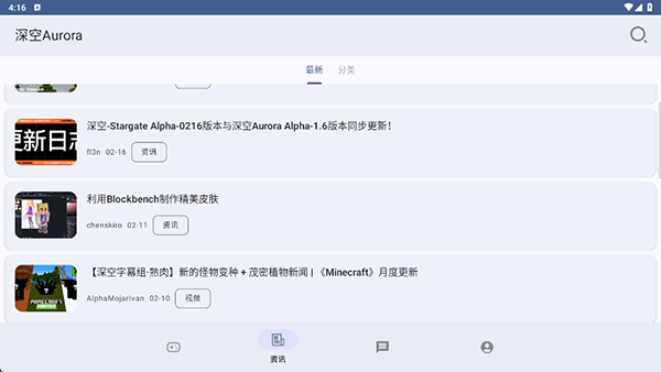 深空Aurora(深空我的世界盒子)是一款专为《我的世界》玩家打造的手机工具软件,提供丰富的游戏资源和强大的编辑功能,让玩家可以自由创作属于自己的游戏世界。这款软件不仅支持地图、皮肤和模组下载,还能轻松管理游戏安装、卸载和更新,操作简单方便,特别适合新手使用。
