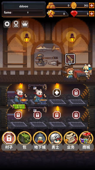 英雄的铁匠中文版是一款非常休闲有趣的RPG像素冒险手游,英文名称叫做Warriors' Market Mayhem,该游戏采用经典的像素风格打造,游戏主打装备锻造为核心,又加入了英雄招募、养成和战斗等多元化要素内容,从而让游戏不乏那么的单调,更加的充实有趣。英雄的铁匠中你目标就是尽可能满足客人的需求,派遣勇士出征获取装备锻造的材料,另外游戏还有还有地下城、周目业务完成、柜台装饰等新派玩法加入其中,力图带给你更加休闲有趣的rpg游戏体验。