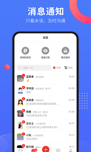 2、实时接收投递简历,随时随地处理简历信息。