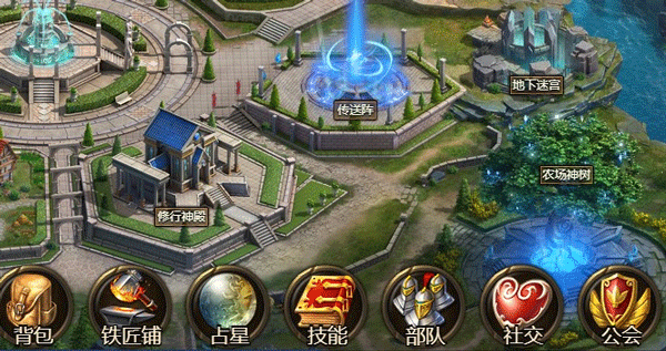 1、进入游戏后,首先我们点击右下角的农场神树就可以进入农场了。