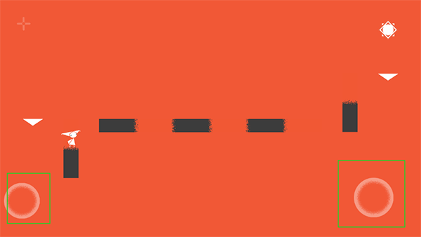 在游戏世界里,只有红和黑两种颜色,包括所有的通关道具都是由这两种颜色组成,游戏玩法很简单,通过改变游戏世界的颜色来控制角色的跳跃前行,在变换其中一种颜色时,另一种颜色所构成的道具也会消失,只有异色的部分显露出来,场景构件也由此在红黑两种的状态下显露出不同的通行属性。