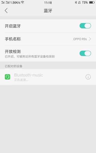 4、点击打开蓝牙,就会切换到手机的蓝牙界面,我们打开即可