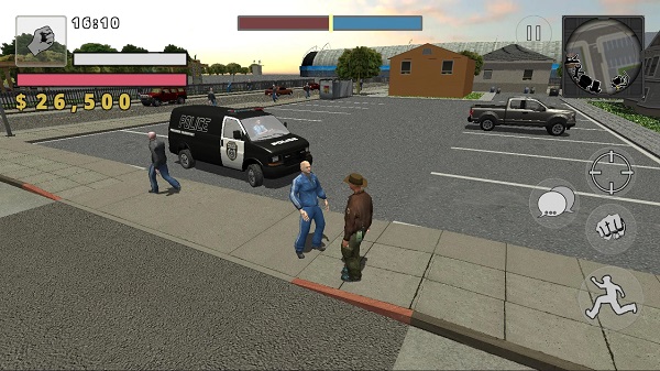 3、再说说怎么在这款游戏中当一个好警察吧。虽说这种游戏,大多数游戏玩家的目的都是去发泄压力,但偶尔肯定也会想当一次好人。那么该怎么做呢,首先第一种选择是玩家可以执行一些好警察任务,第二种就是去大街上执行正义,玩家可以直接向那些违法犯罪的行为重拳出击,比如抢劫之类的行为。玩家可以用自己的方式对他们进行惩罚。
