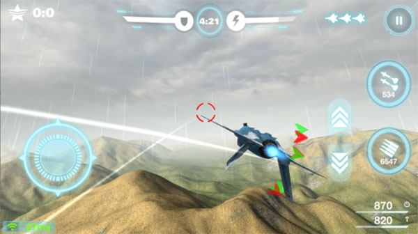 △战术运用:在游戏内,通过向上滑动战机垂直上仰180度,避开敌方导弹。在爬升的过程中飞机速度会不断减慢,也可利用减速使得敌机错过你,重获位置优势。