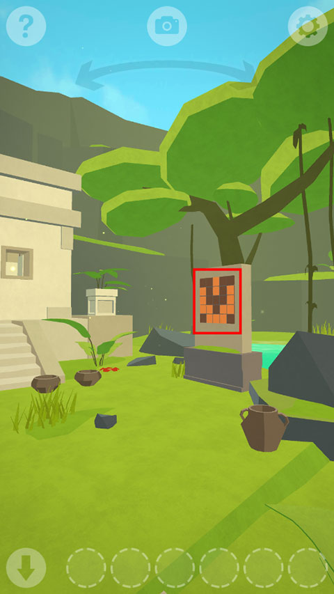4、来到左边同样的石壁,点击方格,使两边的图案一样,就可以打开中间的大门;