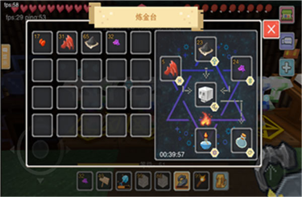 材料放置完毕后,手持打火石对着炼金台长按即可激活炼金台啦。ps:激活的炼金台左下角有个时间倒数提示。