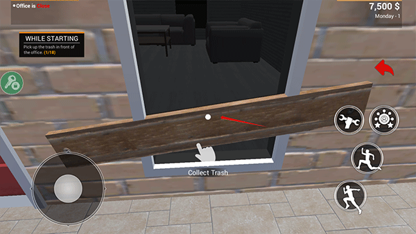 2、首先我们需要先将门店附近的垃圾处理掉,靠近立即后点击白色手指即可清除