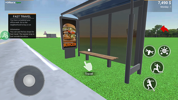 7、通过公交站我们可以前往办公室、邻里、汽车超市、加油站、红酒吧、容器6个地方,由于本次我们是要去购买二手车,所以我们需要前往邻里购买汽车