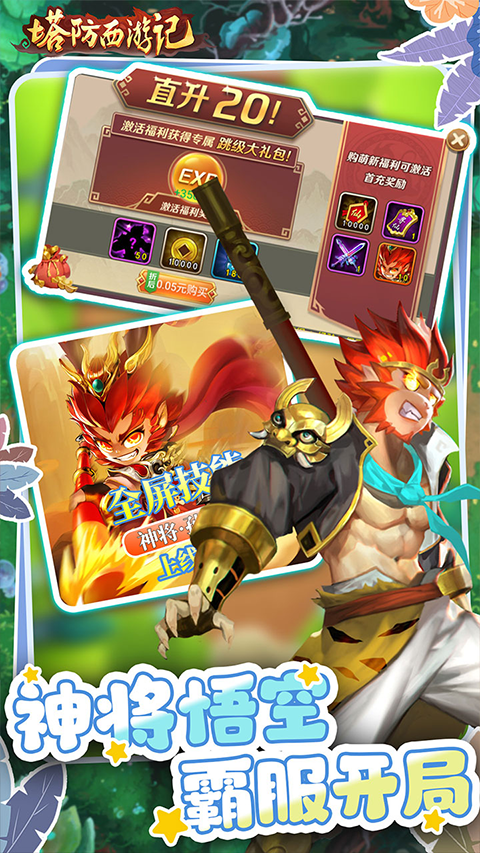 1、在这款2D卡通策略塔防游戏《塔防西游记》中,你将作为西天取经的主人公,通过招募各式仙将来组建自己的队伍。