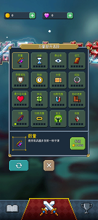 2、强化自己的武器和魔法,提升清理怪物的速度,不能让任何怪物靠近自己,生存到最后;