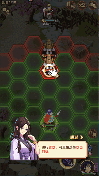 2、点击普攻可以选择攻击目标。