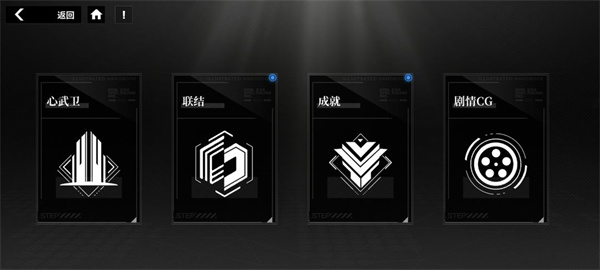 2、数据库:可以让自己去研究战斗,看心武卫和联结的搭配。可以领成就的奖励,看剧情的CG。