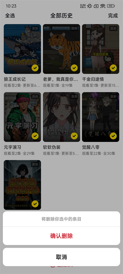 2、勾选自己想要删除的内容,或者直接点击左上角【全选】删除全部内容,点击【确认删除】即可。