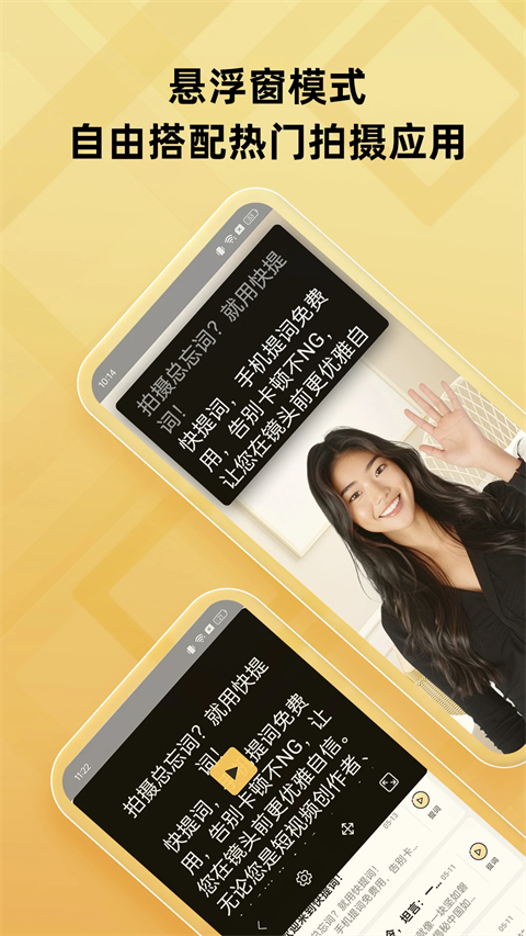 特有的悬浮窗提词功能,与各大拍摄/直播APP搭配使用,方便用户随时记词,解决录制视频时的忘词难题。