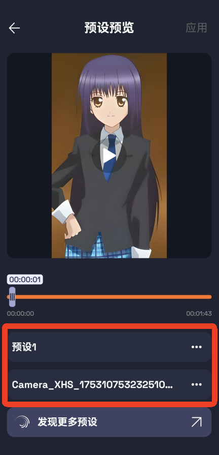 3、点击其中一个预设,再点击右上角的应用就可以了。
