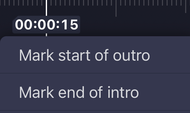 要设置指示这些部分的重新计时标记:将播放头滚动到所需时间>长按当前时间>选择所需动作。