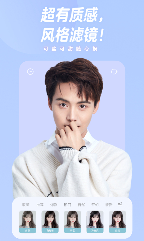百变风格质感滤镜,氧气妆容轻量美颜,可盐可甜你定义。