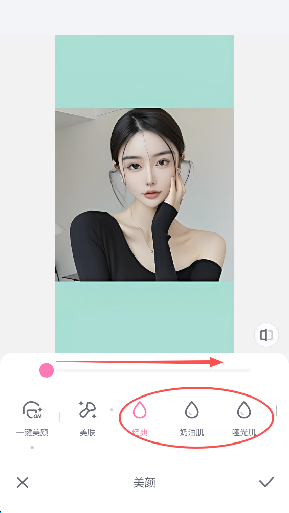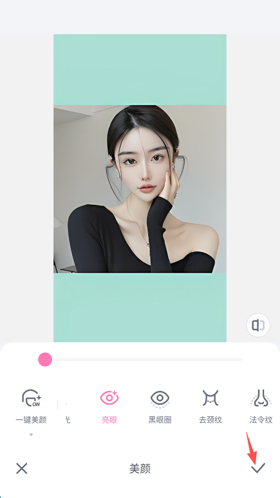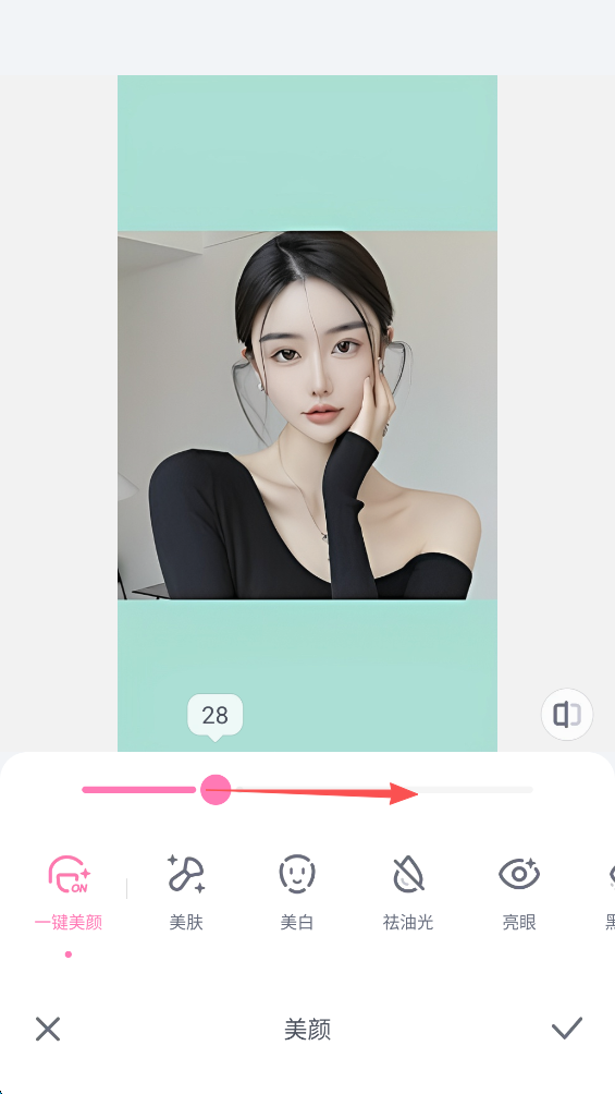 10、可以通过拉动照片下方进度条来调整美颜程度,随后再进行手动微调。