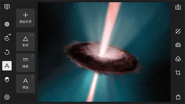 “添加文字”选项下一共有12个调整选项。分别为字体选择、对齐方式、大小、行间距、字母间距、角度、色彩、不透明度、混合、描边、反选、删除、复制。