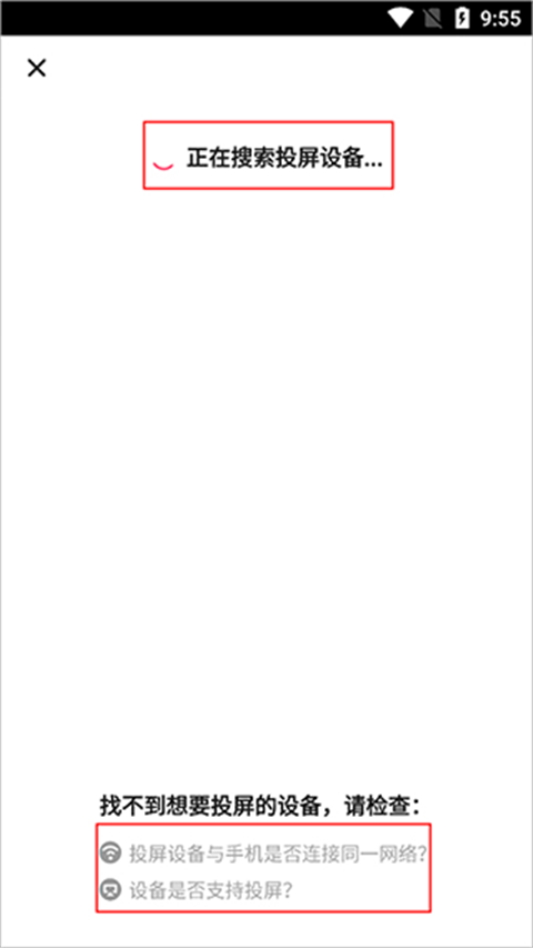 (1)投屏的设备与手机是否连接了同一网络;