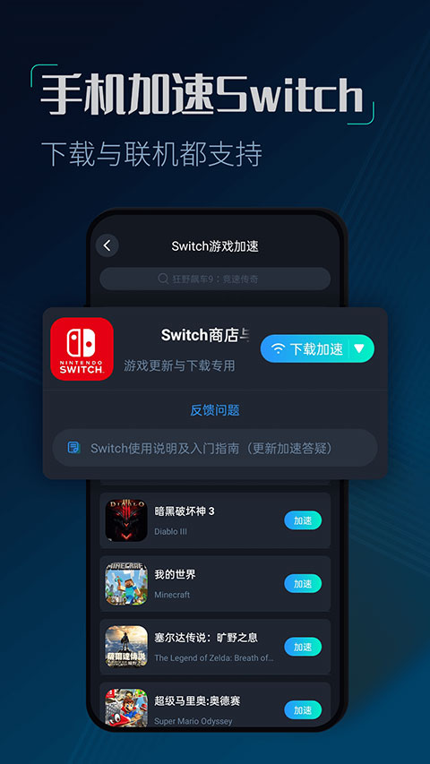 此外,CC加速器手机版最大的特色在于,可以手机加速switch,无论是下载还是联机都通通支持,超级马里奥:奥德赛、塞尔达传说:旷野之息、我的世界等,更多精彩尽在其中。游戏覆盖面广,多款热门游戏,不同区服全面覆盖,满足不同玩家的游戏需求,支持罗布乐思、PUBG: NEW STATE、宝可梦大集结、宝可梦:GO、决胜时刻、超凡先锋、现代战舰等游戏加速,更有专人负责每款游戏加速路线配置,不断优化完善,只为给你带来更加顺畅的游戏体验。