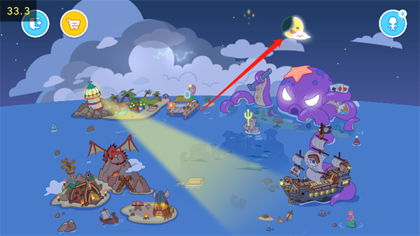 3、选择右上方【月亮】图标,可以随意切换白天和夜晚的场景