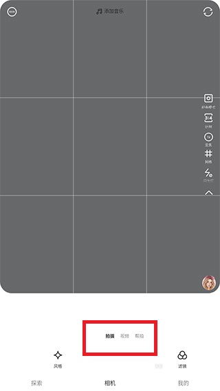 1、轻颜相机有三种拍摄模式分别是照片拍摄、视频和帮拍,帮拍需要两台手机同时连同一个热点或WiFi;