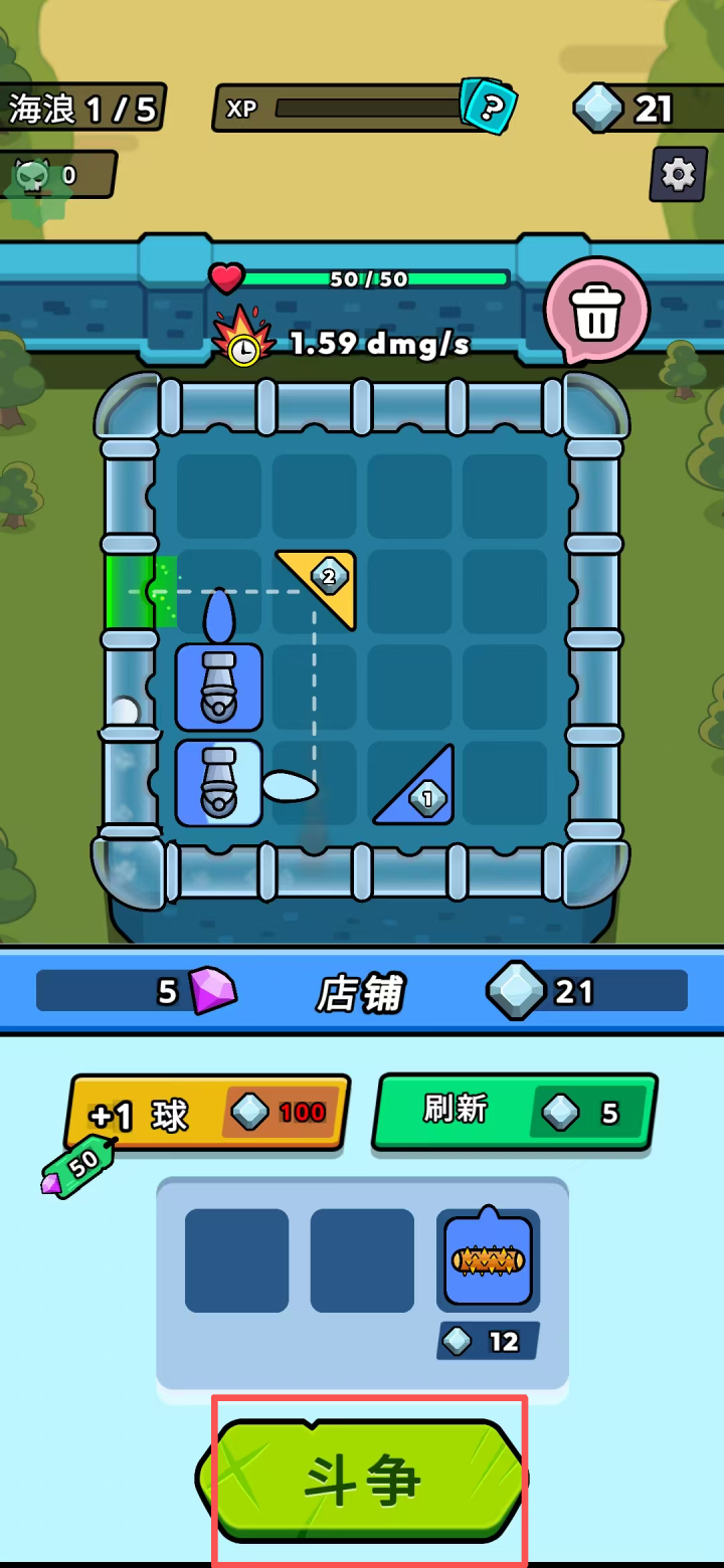 3、战斗过程中,球体会持续碰击已放置的组件并发动攻击,用以消灭来袭的敌人;每成功完成一波敌人挑战,都会获得额外的组件布置机会,相同等级的组件还可以合成为更高等级。