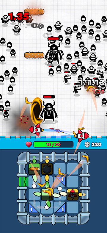 我觉得这款游戏挺有意思的,尤其是通过布置各种武器来创造连锁反应,每次成功击退敌人波次都很有成就感。抽卡系统和升级武器也让游戏有更多的战术选择。不过,面对越来越强的敌人时,单纯堆砌组件已经不够,必须思考角度和触发顺序才能过关。这种策略性让游戏不仅仅是放置,而是需要动脑筋调整布局,挑战自己的极限。
