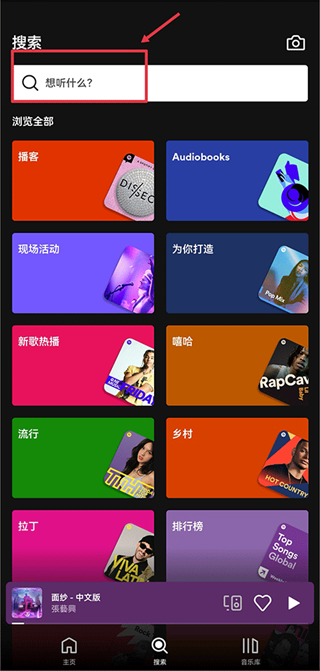 1、打开软件后,滑动至顶部搜索框,输入想要查找的歌曲名称或歌手信息。
