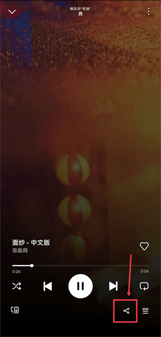 3、在播放界面右下角可进行分享操作,一键将喜欢的音乐推荐给好友。