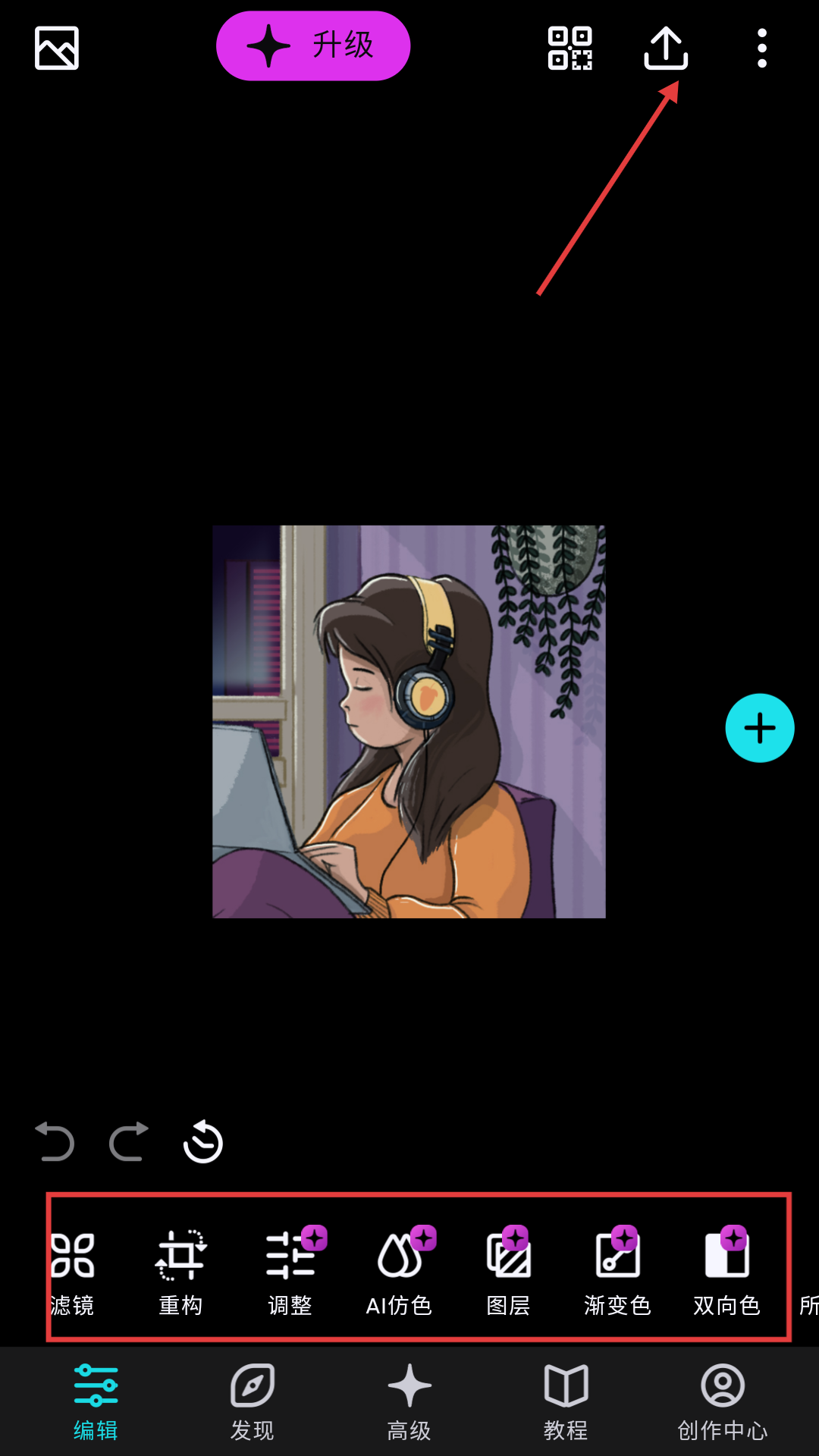 3、图片载入完成后,即可进入编辑界面开始调整。