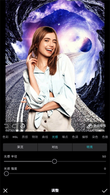 •全局调整:光效,色彩,HSL,曲线,光感,质感,特效,偏移,染色,色调,色散,暗角,噪点,LUT