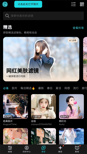 •海量优质滤镜,每天都有新滤镜
