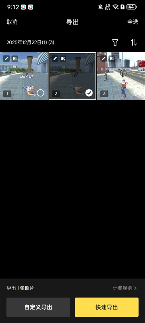 6、勾选需要导出的图片,支持【自定义导出】和【快速导出】;