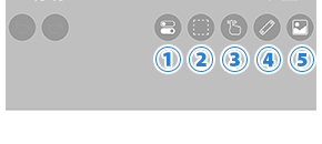 右上角的按钮从左到右依次为: ①[ 查看菜单 ], ②[ 选择区域工具 ],③[ 稳定器工具 ]、 ④[ 标尺工具 ],以及 ⑤[ 材质工具 ]。