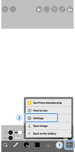 点击 ①[ 返回按钮 ],然后选择②[ 设置 ]。