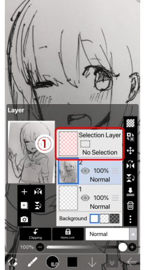 现在我们有三层。具有粉红色背景的图层称为①选择层。它是一个特殊的图层, 您可以使用刷子或橡皮擦来创建选区。我们建议初学者不要使用这一层。