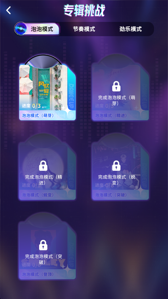 主打无轨道式的长键线与点按结合操作,音符随音乐节奏自由分布,长键线需持续按住直至结束,短键则需精准点击。该模式对读谱能力要求高,玩家反馈长键线易辨识不清,偶有按键判定异常导致 MISS 的情况,是三个音舞模式中操作难度与争议并存的类型。