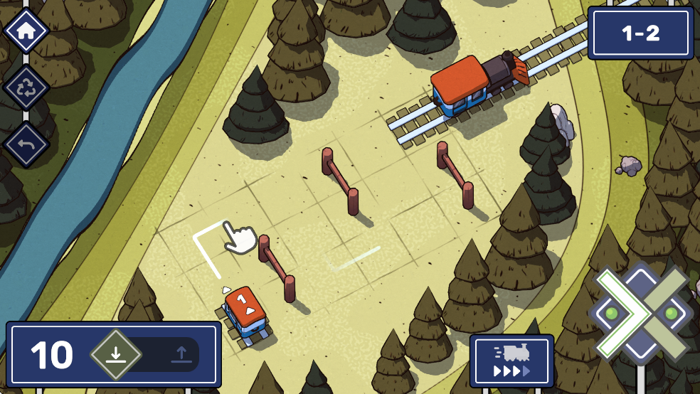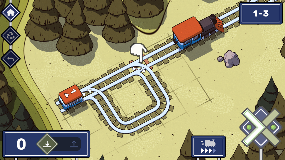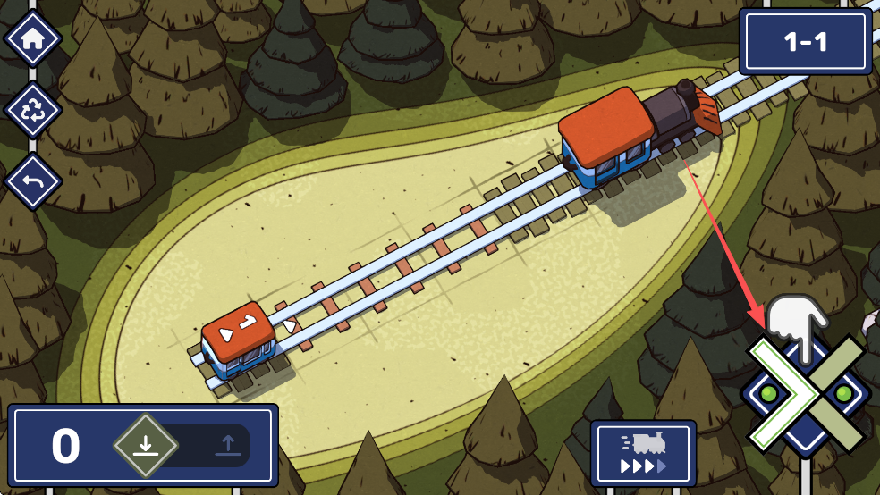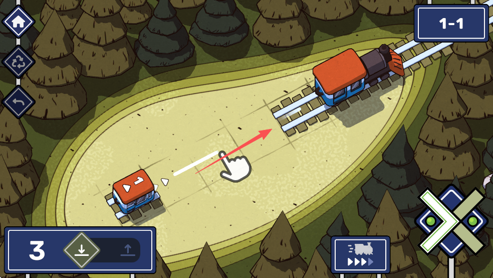 摆放、移除轨道,或者重新安排火车路线,让车厢安全连接到与火车头上,顺利行驶!但要小心,多个车厢同时行驶的时候,需要规划出合理的路线,巧妙设计轨道,不要让它们撞到一起喔!