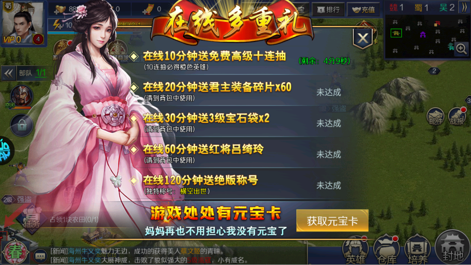 开局送美人貂蝉,上线免费送10万钻石,直接解锁SVIP1特权