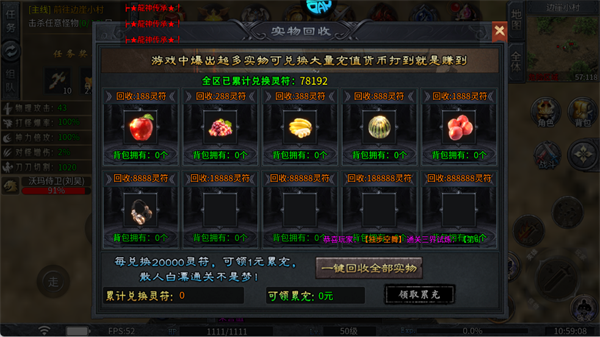 怪物掉落的实物道具可兑换灵符,累计20000灵符还能领1元累充,散人白嫖也能获取充值货币。