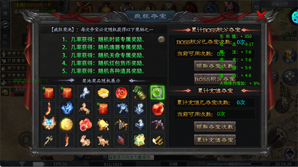 消耗BOSS积分或充值可参与夺宝,有概率获得时装、武器、红包等专属奖励,提升资源获取效率。